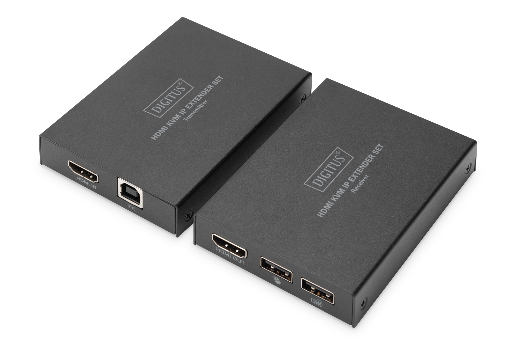 · HDMI 1.4 · 6,75 Gbps Video-Bandbreite · Unterstützt Full HD, 1920x1200/60 Hz, 4:4:4 · HDCP 1.4 · Unterstützt CAT 5e, 6, 6A, 7, 8 Netzwerkkabel · Maximale Übertragungsdistanz: 150 m (Punkt-zu-Punkt Verbindung) · Unterstützt H.256 Encoding/Decoding · USB 1.1 · Kompression: H.265 · Anschlüsse Sendeeinheit: · 1x HDMI Eingang (1920x1200/60Hz) - Anschluss Signalquelle · 1x RJ45 Ausgang - Anschluss CAT Übertragungskabel · 1x USB-B Eingang - Anschluss Host PC zur Nutzung der KVM-Funktionalität · 1x IR Ausgang - Anschluss von IR-Sender · 1x Netzteil Eingang (DC 5V/1A) - Anschluss externes Netzteil · Anschlüsse Empfängereinheit: · 1x HDMI Ausgang (1920x1200/60Hz) - Anschluss Ausgabegerät · 1x RJ45 Eingang - Anschluss CAT Übertragungskabel · 2x USB-A (1.1) Eingang - Anschluss Maus & Tastatur · 1x IR Eingang - Anschluss IR-Empfänger · 1x Netzteil Eingang (DC 12V/1A) - Anschluss externes Netzteil · ESD-Protection · Betriebstemperatur: -10-50° · Stromverbrauch: Sender ca. 1,4W, Empfänger ca. 1,7W · Kompression: H.265 · Gehäuse: Metall · Abmessungen (1 Einheit): L 9,15 x B 6,7 x H 1,75 cm · Gewicht: Sender 155 g, Empfänger 150 g · Farbe: schwarz
