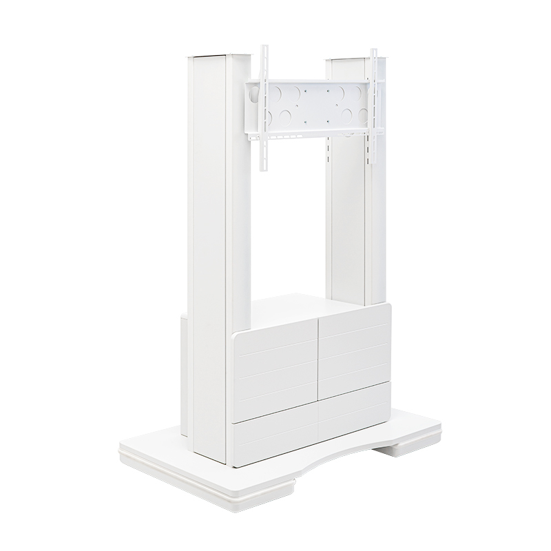 Das System ist durch 4 stabile Transportrollen mobil verfahrbar. Zwei davon, auf der Rückseite, sind feststellbar. Die Höhe des Bildschirms ist durch Raststufen montageseitig einstellbar. Die maximale Traglast des Systems liegt bei 100 kg.