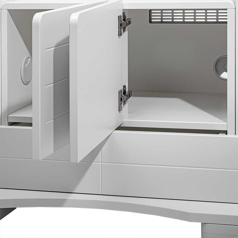 Unterbau-, Schrank-, und Schubladenkonstruktion haben eine pflegeleichte Oberflächenveredelung.
